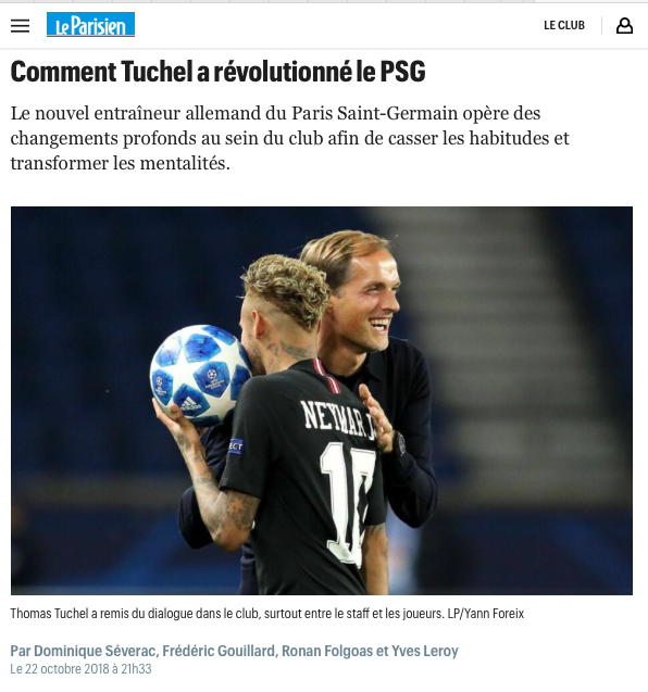 Moi, dans ce que je lis au-delà des médias mainstream, c est pour la faire courte, pour l instant tout se passe bien, et ils seront jugés en mars Côté supporters, on a assez d experience pour ne pas s'enflammer, mais là on kiffe la qualité de jeu proposée en ce début de saison car depuis des mois on en a été sevré. Et puis on apprécie Galtier qui parle vrai dans sa communication là où pochettino était lunaire.