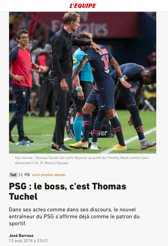 Ceci dit pour rester sur la presse, Plus vaste que l’Equipe et le Parisien (et tous ses dérivés en province avec aujourd’hui region) uh ! vraiment ! je serais bien content que tu m’en cites quelques-uns qui ont plus de lecteurs en cumul que les trois précités Speaking of wich L’article de Severac dans le Parsien et surtout dans toutes les régions avec Aujourd’hui province Ce Grand Paris n’est pas un rêve Ce dimanche, dans le Nord, le club de la capitale, absolument divin, a surclassé les Dogues, avec un but précoce de Mbappé et une orgie de jeu. Rarement Paris aura offert en début de saison un tel visage de joie et de puissance. Paris Sublime Génialement pourrait devenir le nouvel acronyme du PSG. Amoureux du club de la capitale, videz les plages, quittez l’autoroute, pliez bagage, car il ne faut pas rater en ce mois d’août et de vacances ce retour du beau en Ligue 1, incarné par une équipe exquise et divine , à la gestuelle soyeuse et léchée. Un feu d’artifice continu, un 14 Juillet du jeu, avec sa fête et ses bals (balles ?) populaires.Et je vais pas m’emmerder à tout recopier toute la suite est du même tonneau (génial, divin, exquis, flamboyant et j’en passe. T’as l’impression que le mec parle du Brésil de Zagalo ou de Tele Santana, du Barca de Pep ou de Cruyff, alors qu’en fait Paris vient juste de torgnoler Clermont et Lille, ce qui devrait être l’ordinaire du PSG toutes les semaines vu l’énorme fossé qui le sépare du reste. Ce qui devrait etre normal passe pour un exploit. Va comprendre) Alors oui Severac est plus groupie du PSG que journaliste (et c’est pas le seul) mais de la mesure….