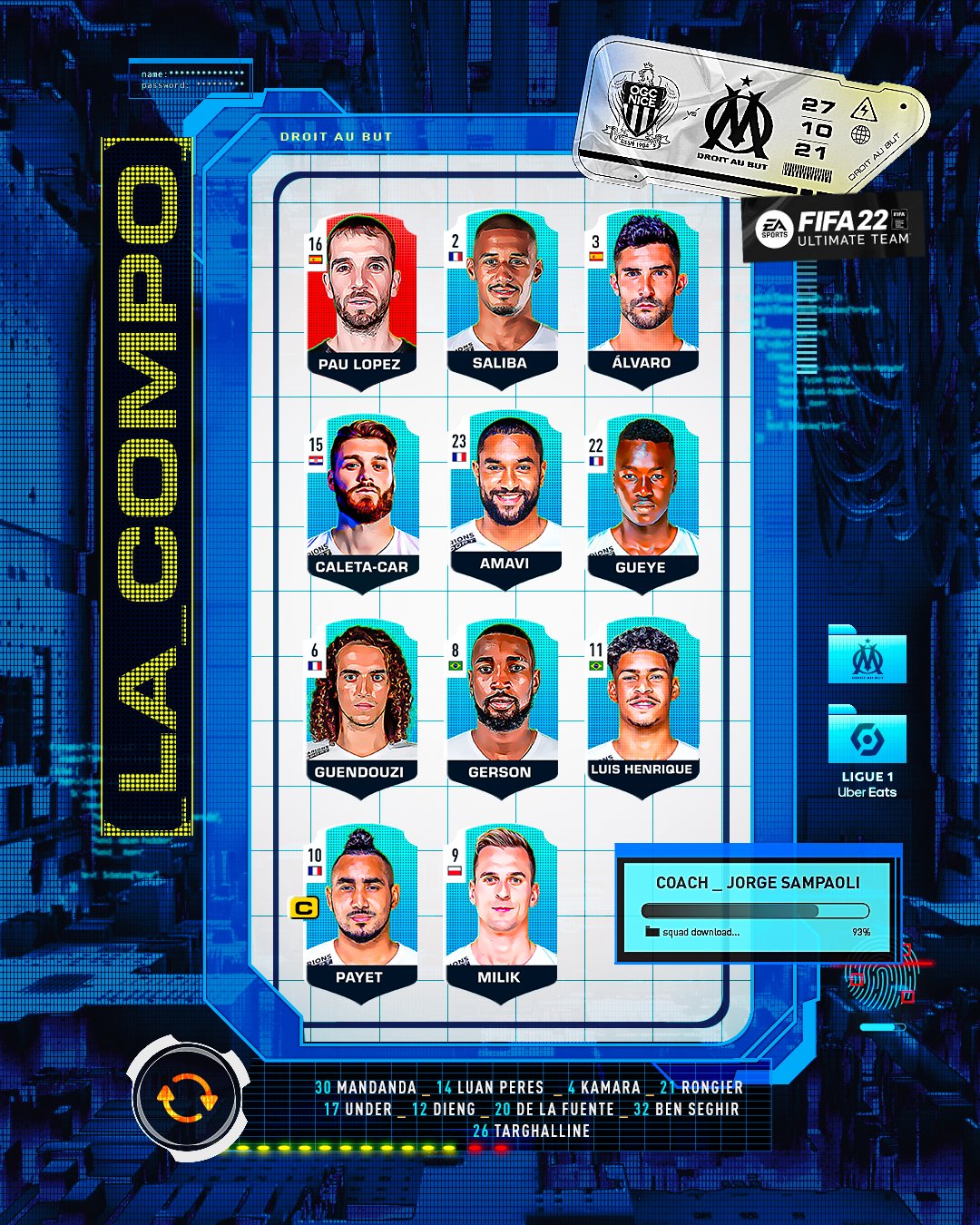 Sans Peres, sans Kamara et sans Rongier, avec Alvaro et avec Amavi titulmaires. RIP le côté gauche.